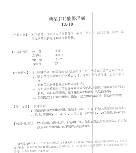 上一篇:硬挺劑TZ-17